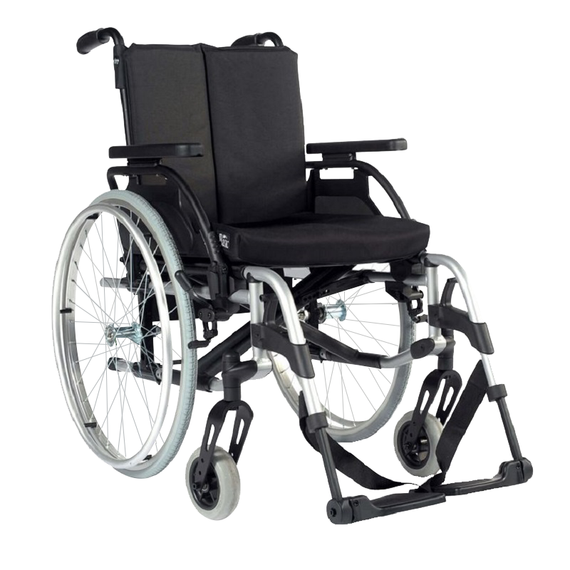 The device is equipped with four swivel casters with brakes that allow to move the user within a flat or outdoors area.